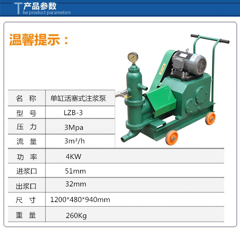 LZB-3单缸活塞式注浆泵