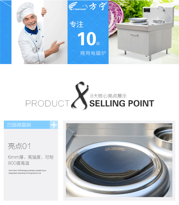 方宁商用电磁炉15KW 单头单尾电炒炉