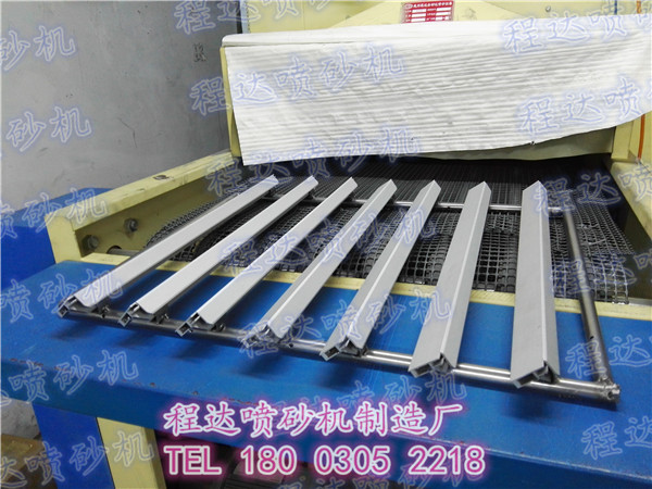 这款输送式自动喷砂机是针对铝型材设计而成的,工作仓库尺寸可以根据你的铝材大小来设置,客户已定做过的工作仓尺寸有:1400L*1500W、1500L*1600W、1100L*1200W、800L*900W、700L*800W、1000L*1100W、1200L*1300W、2400L*2000W、900L*1000W。