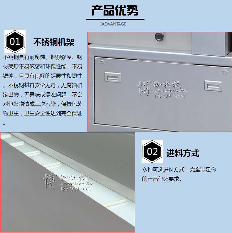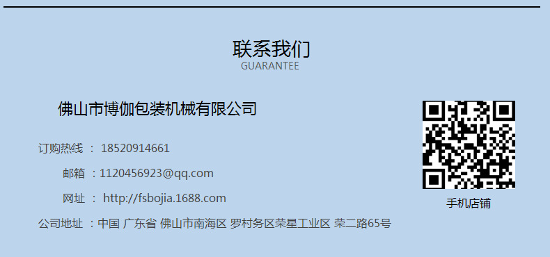 佛山市博伽包装机械有限公司座落于“中国包装机械城”之称的广东省佛山市,是一家集研发、制造、销售于一体的科技型机械企业,拥有一批***的机械研发队伍,曾先后荣获多项***发明及实用新型专利证书,所有产品均通过欧盟“CE”认证。 博伽机械历经不断创新的发展历程,其生产的 “博伽”牌产品在同行业中享有极高的荣誉和口碑。现主营产品有:枕式包装机,横式包装机,双伺服包装机,三伺服包装机,自动理料线,上走膜包装机,下走膜包装机,后拉膜包装机,往复式包装机,回转式包装机,不锈钢枕式包装机,充气包装机,排气包装机,面包包装机,蛋糕包装机,饼干包装机等系列产品。产品广泛应用于食品、化妆品、日用品、文具用品、五金用品、酒店用品、蔬果包装等领域。凭借可靠的质量、稳定的性能和周到的售后服务,使产品遍布全国各省市自治区的同时,还远销海外***市场,深受国内外用户的一致好评。 博伽机械本着“以质量求生存、以诚信求发展、创新迎接挑战、服务面对竞争”的宗旨,向着“与世界同步、创中国品质”的目标,力争为每一位客户提供“放心的产品、***的服务”。