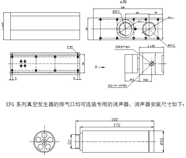 XFG系列多级真空发生器的排气口可接半米左右的软管,以将噪音减到小。
