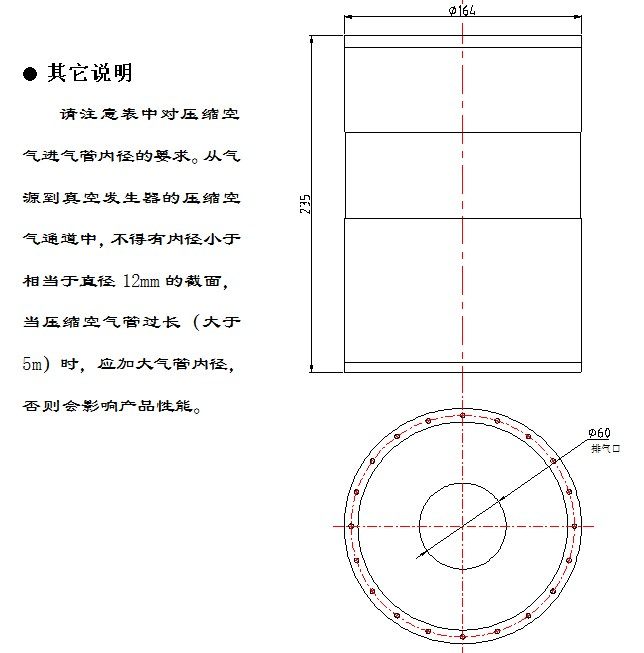 压缩空气中的水分会影响真空发生器的性能,特别是在冬季,这些水分结冰后会堵塞喷射通道,遇到这种情况,允许向压缩空气进口通入清洁的热